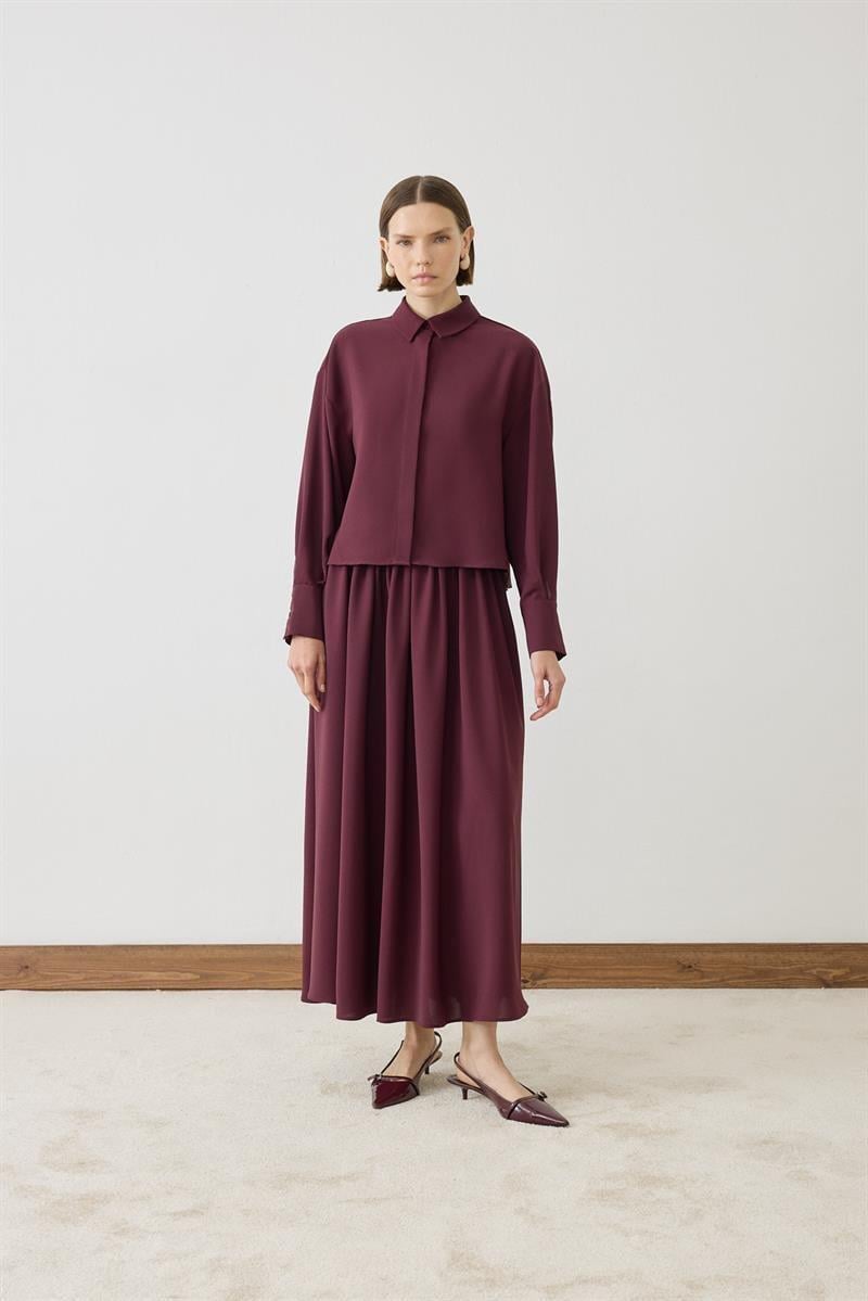 MİORİ LİNZA PLİSE GÖMLEKLİ ETEKLİ KREP TAKIM BORDO (MIO26K0500012)