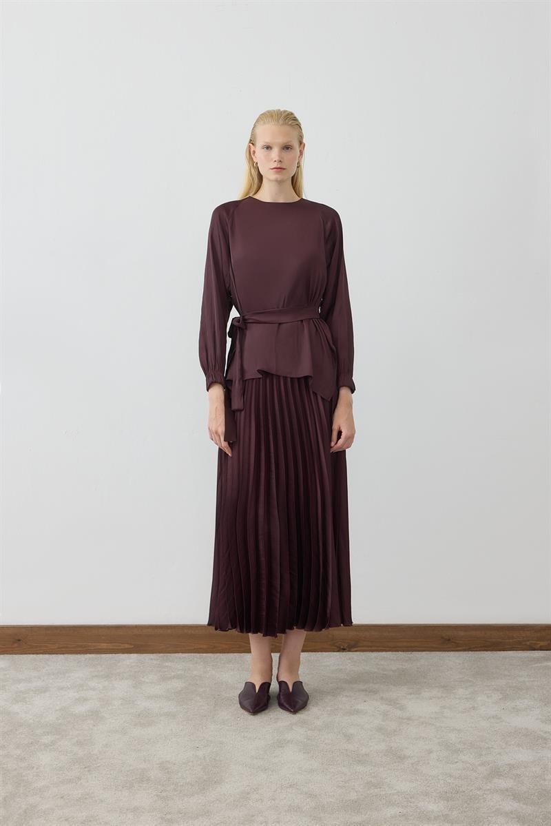MİORİ NORA SATEN PLİSE ETEKLİ TAKIM BORDO (MIO26K0500021)