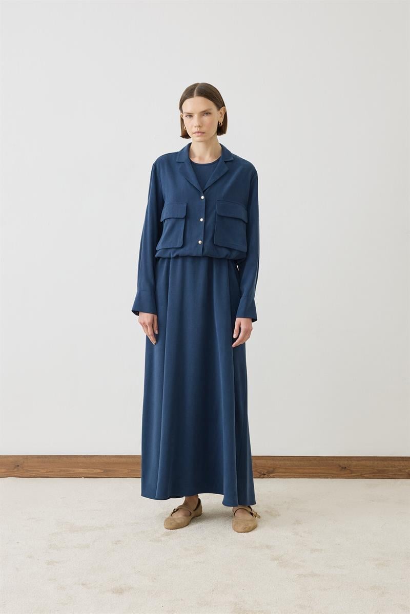MİORİ ROME TENSEL CEKET ELBİSE İNDİGO