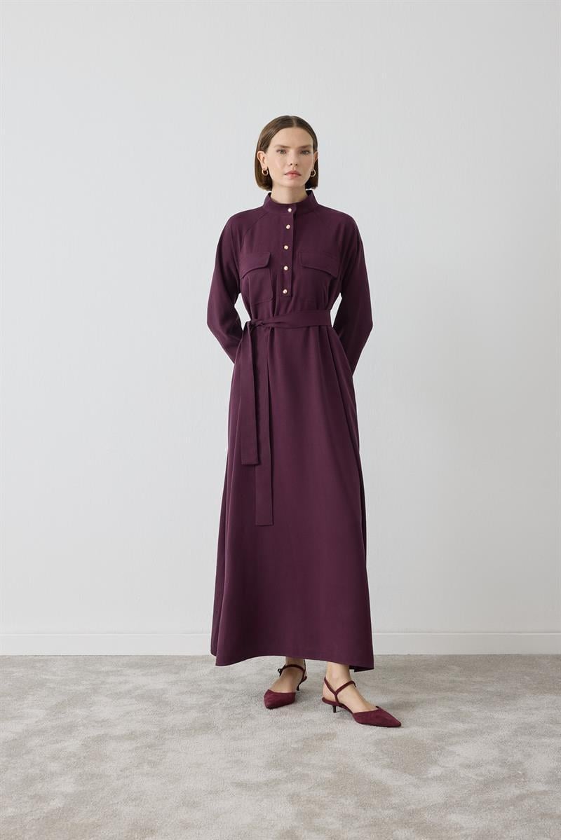 MİORİ SİLVA TENSEL ELBİSE BORDO (MIO26K3100006)